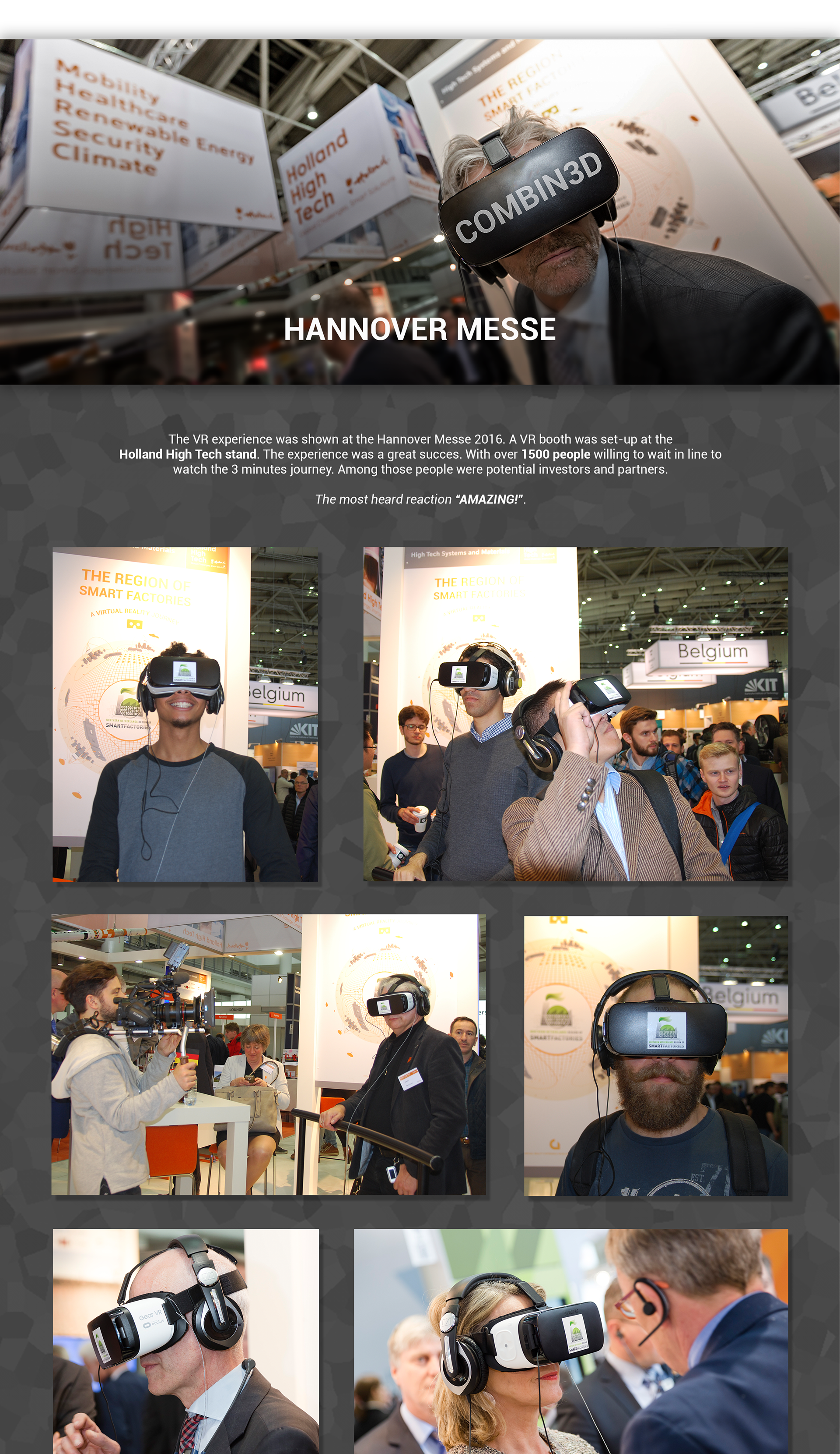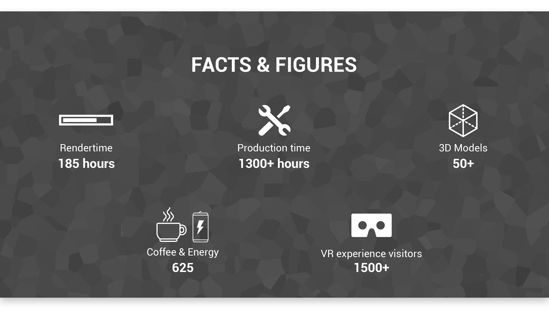 We were invited to create an interesting and different concept to promote the Region of Smart Factories. We challenged ourselves to create a full Virtual Reality experience with 3D animation. A great risk, but also an exciting challenge, was telling the viewer a story about something that is not really visible in the real world. The VR experience was shown first on the Hannover Messe, Germany.